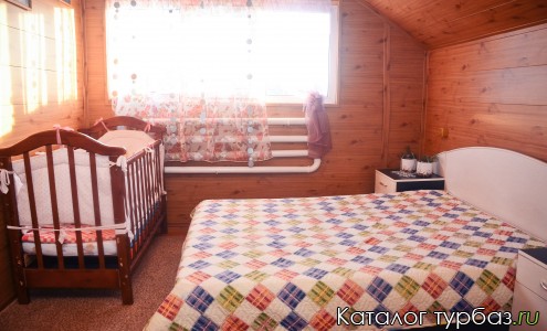 2-местная спальня с дополнительным спальным местом для ребенка на 2 этаже (2-спальная кровать, постельное белье, тумбочки, кроватка-манеж),