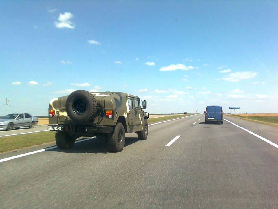 проделывал этот манёвр трижды просто напрашиваясь на фотку, что я на третий раз и сделал. А он то на заправке остановится, то в кафешке… В итоге к повороту на Витебск (который по знаку на Слуцк, но мы-то знаем) приехали одновременно. Но это нам на Витебск, а ему оказалось прямо – в столицу.