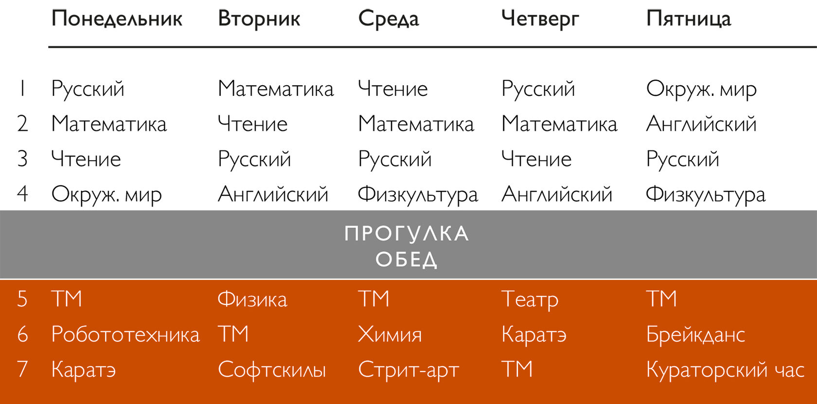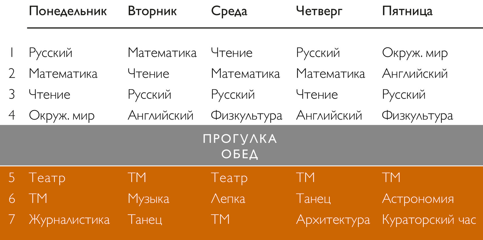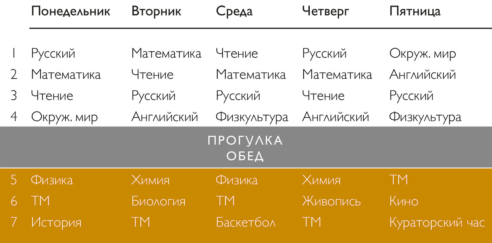 Сигнала об окончании перемены тоже нет — ребята привыкают сами приходить на уроки вовремя. Это учит интуитивно следить за временем и рассчитывать свои силы.