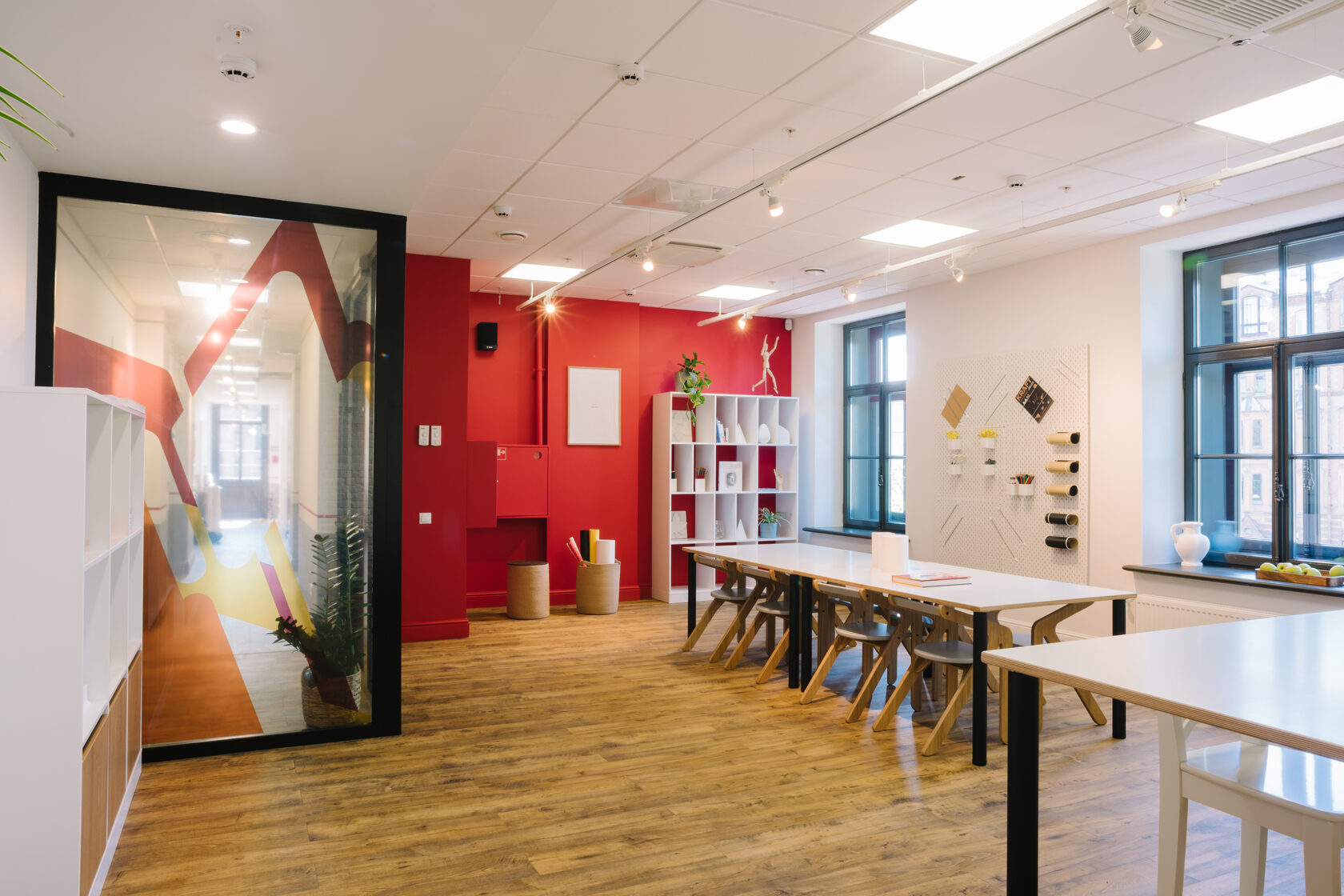 На двух этажах здания разместилось 8 классов, в том числе: творческая мастерская, коворкинг, музыкальная, театральная и танцевальные студии. В классах стоит экологичная и безопасная мебель, которая легко трансформируется под разные задачи: за пару минут класс можно превратить в сцену, мастерскую или кинозал.
