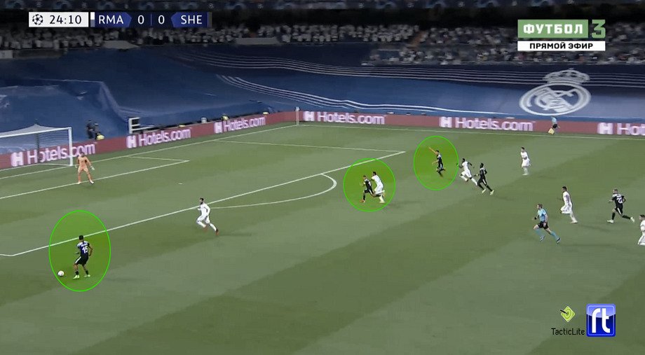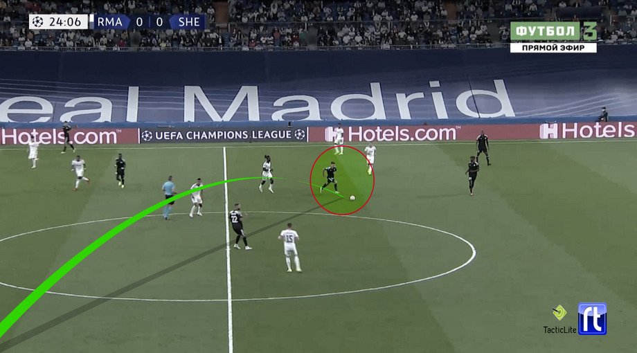 Победный гол – более случайная история, поскольку удар наносился с дальнего расстояния и получился сумасшедшим по исполнению, но и там «Шериф», похоже, играл осмысленно: стянул при ауте к боковой линии двух соперников, далее задействовал нападающего для сброса (команда постоянно бросает ауты на него в штрафную) – а потом использовал зону подбора, которую бросил Модрич.