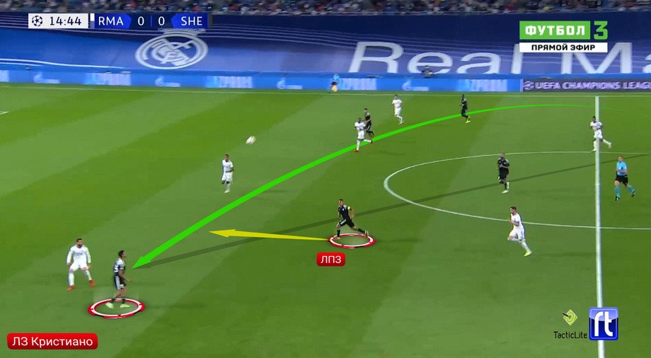 «Реал» не успевает вернуться из фазы прессинга в оборонительную структуру, несётся на всей скорости назад, но проигрывает все позиции набегающим соперникам. Особенно – дальнюю штангу. Чёткий навес Кристиано на Яхшибоева – и красивейший гол.
