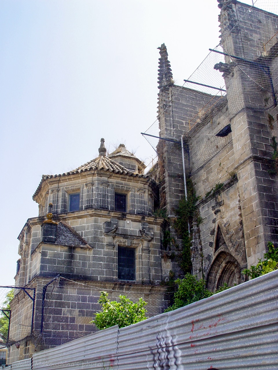 Тут же рядом располагаются и интересные церкви: почему-то незаслуженно обойденная всякими Википедиями и Ruta panoramica de Jerez Basílica de La Merced (и еще одна, о которой ниже), которая датируется XIV веком и выглядит, на мой взгляд, очень мило и привлекательно. Я бы даже сказала, что она понравилась мне больше всех остальных. Беднягу лишили колокольни, и вообще там была в свое время расквартирована армия Наполеона (ну, конечно же, ее очень незначительная часть, а то бы пришлось им потесниться), но зато внутри покоятся останки Мигеля Примо де Ривера (по-испански-то он, конечно, Рибера) и Орбанеха, а он, между прочим, в 1923 году совершил государственный переворот в Испании и успешно диктаторствовал до 1930 года, когда все же вынужден был уйти в отставку.
