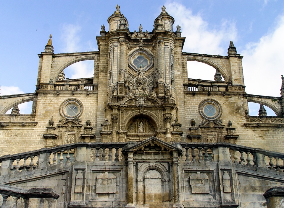 Кафедральный собор Хереса (Catedral de Jerez de la Frontera)Кафедральный собор города Херес – это огромный христианский храм, построенный на руинах мечети. Достопримечательность несколько раз перестраивалась и реконструировалась, однако сейчас она выглядит следующим образом: фасад в барочном стиле, огромный купол в центральной части храма и множество каменных статуй на башенках.