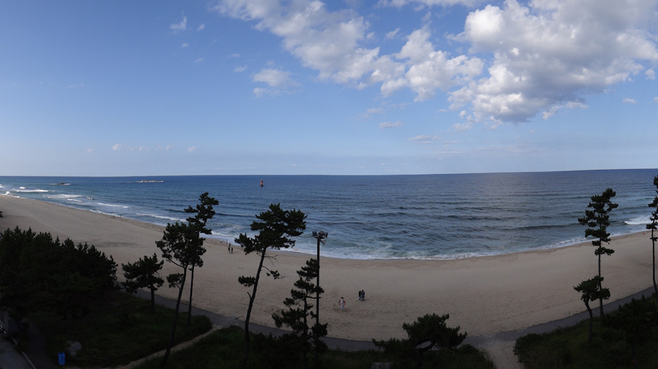 Остановились в отеле, который бронировали через Booking. Отель находился на первой линии, из окна номера виден пляж и море. Хотя отель довольно большой, персонал очень вежливый и никаких сейфов-минибаров в номере не предусмотрено. Но за время пребывания в Корее мы как-то привыкли к отсутствию криминала, поэтому не боялись оставлять в номере технику. Никаких проблем с этим не возникло.