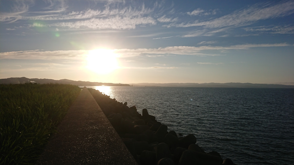 Переехал из огромной деревни под названием "Токио" в деревню поменьше. Ночной автобус из Токио и вот уже прогуливаюсь по побережью Японского моря. Не смотря на то, что город Такаока явно деревня в сравнение с Токио, имеет явные приимущества над жизнью в столице Японии. Хотя Токио в плане архитектуры на звание города мало претендует за редким исключением. Плюс жизни в Тояме и её окрестностях: остуствие пробок как таковых. С одной стороны тут мягкий тёплый климат, что аж растут бананы. При этом зимой до горнолыжки пол часа на машине. Пляж также под боком, как и трек. Всё в получасе езды. В Токио такая роскошь не возможна.