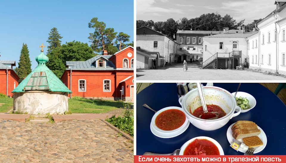 Питаться можно в трапезных (450 руб. обед (суп+ макароны с рыбой, хлеб+компот, чай с печенькой цена 2018г.) на одного человека, но можно и нужно разделить на двоих, порции для двух хлюпиков огромные.)
