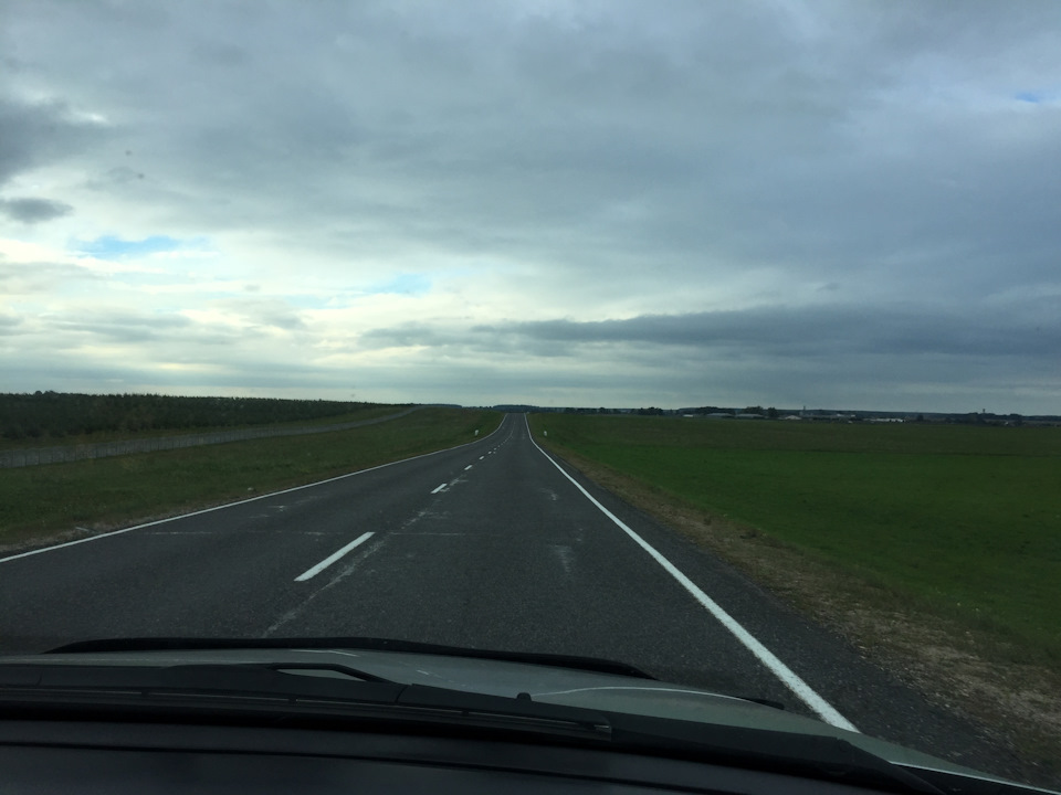 Она практически прямая. Все 350 км я хотел спать. Участок от Минска до границы и то в десятки раз интереснее, там хоть иногда встречаются повороты и небольшие перепады высот. Здесь тебя пробуждает колея в правой полосе и редко встречающиеся, но всё же встречающиеся заплатки, которые нифига не вровень с дорогой. Встретили несколько раз полицейских, рядом с которыми стояли исключительно машины с российскими номерами. Насторожились. Но зря, ехал 120, иногда 130, камеры стоят редко, есть предупреждения. Ещё, выезжая из Бреста, каждые пару километров поселения, только разгонишься, снова тормозишь. В поселение въезжаешь, сначала ограничение 80, потом 60, наверное, чтобы успели оттормозиться. Это плюс.