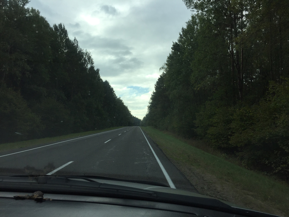 Сразу вспомнилась дорога от Калуги на Тарусу (осенью 2017). Впечатления были схожие. Но они были разбиты вдребезги, только я проехал стеллу "Тарусский район", там не дорога, а очко. Что-то я в сторону ушёл. Дорога мне настолько понравилась, что я решил, когда поеду в Европу, обязательно сделаю крюк, и проеду этот участок ещё разок, к тому же, это же Беловежская пуща. Интересно, а какая дорога была бы, если б мы свернули в середине участка на Каменец? Деревья нависают над дорогой, как в сказке, машин нет. Мы даже остановились перекусить и размять конечности.