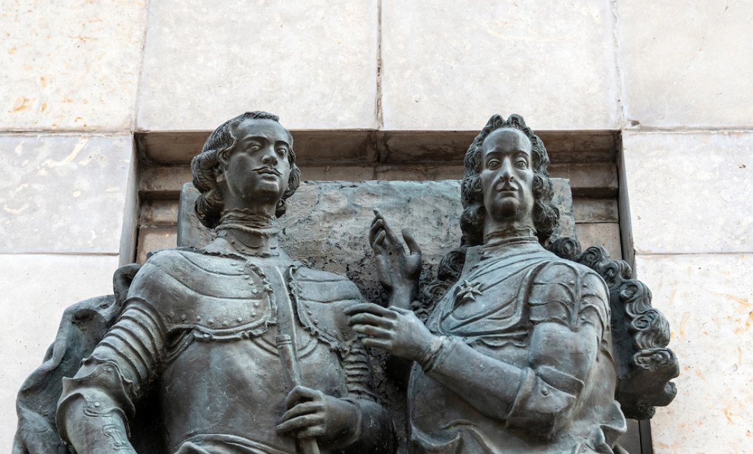 Памятник Петру I и Лефорту. Москва, Красноказарменная улица, 2