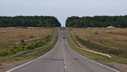 - Путь от Балашова до населенного пункта Лысые горы в Саратовской области. Четырехполосное движение, между встречными путями двойная сплошная линия.