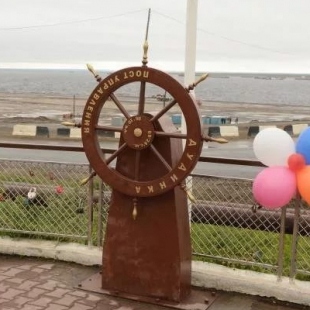 Штурвал города города расположен рядом с городской администрацией. Арт-объект представляет собой нос корабля со штурвалом, на котором написано - Дудинка. Пост управления. Информация