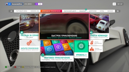 Никуда не делись дебютировавшие в прошлой части марафоны испытаний Forzathon. А в дополнение к ним появилось кое-что любопытное — «Командные приключения», рандомный набор развлечений для двух команд: от кольцевых гонок до безумных игр в кошки-мышки или заездов до финишной точки по произвольному маршруту. По умолчанию состязания для «КП» каждый раз выдаются случайным образом, но можно создать и своё собственное — тогда заезды позволят подобрать собственноручно. Оба режима превосходно ложатся на сезонную систему: для каждого есть уникальные испытания и мероприятия по временам года.