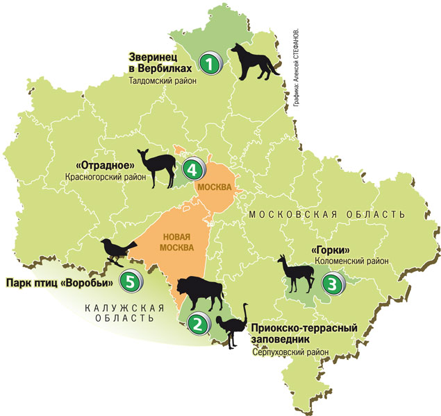 Увидеть сурикатов или покормить американского буйвола морковкой можно не только в столичном зоопарке. Зверинцев немало и в Подмосковье - а ведь смотреть на животных, в том числе редких, куда приятнее среди полей и лесов! В этих зоопарках не так много народу - что в общем-то приятно. И главное, во многих зверинцах детям разрешают трогать некоторых, самых миролюбивых животных и даже ухаживать за ними. «КП» составила пятерку лучших мест под Москвой для общения со зверями.