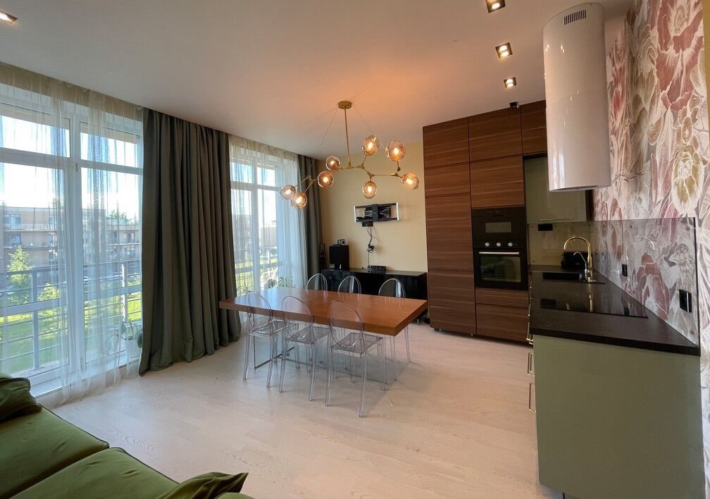 Апартаменты на 57 «квадратов» на вторичном рынке в этом ЖК обойдутся в 11,8 млн рублей (они ниже на фото). В квартире выполнен дизайнерский ремонт. Размер кухни – 10,5 кв. м, санузел совмещенный.