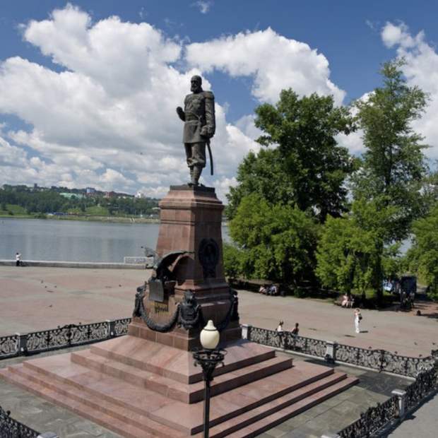 Памятник адмиралу Александру Колчаку, арестованному и расстрелянному в Иркутске. Памятник размещён на месте расстрела Колчака, возле Знаменского монастыря, на берегу Ангары. Информация