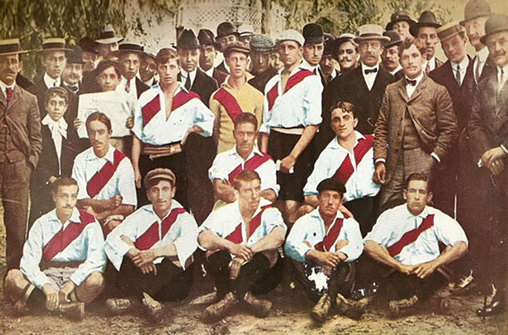 В начале 20-го века главные события развивались в районе для иммигрантов Ла-Бока, где чуть раньше родился самый страстный танец планеты – танго. В 1901-м после слияния столичных клубов «Росалес» и «Санта Роса» в Ла-Боке образовался «Ривер Плейт». Британские хозяева подсмотрели название в порту на табличках кораблей, где в качестве адреса доставки писали «Ла Плата»: Ла-Бока в переводе с испанского означает «устье», район расположен у места, где река Матанса-Риачуэло впадает в Ла-Плату (на английском – «Ривер Плейт»). Как-то на ночном карнавале игроки и болельщики стянули гигантскую ленту из красного шелка, разрезали ее на части и прикрепили к форме по-диагонали: так появился культовый элемент, который с футболок перелез и на эмблему клуба.