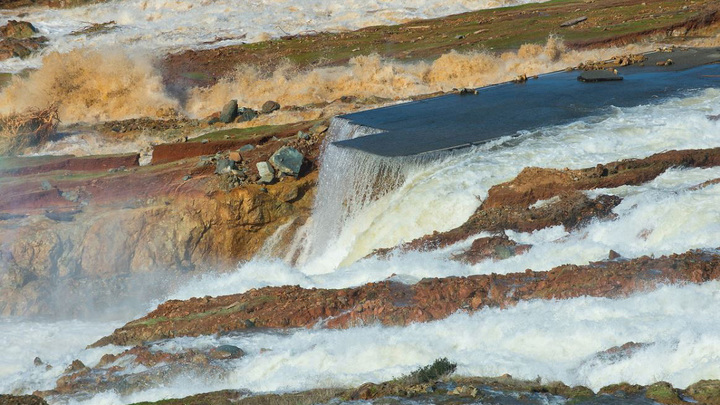 Напомним, после затяжных дождей уровень воды в озере Оровилл достиг критического. И 11 февраля вода впервые за почти 50 лет начала переливаться через дамбу. А рано утром в понедельник стало известно, что из строя вышел основной водосброс плотины. Кроме того, на плотине было зафиксировано разрушение аварийного блока, с помощью которого осуществлялся сброс воды после вывода из строя основного механизма.