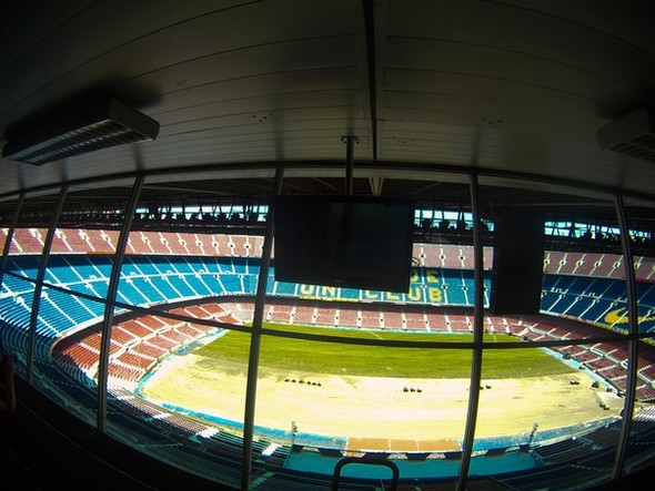 На следующий день, в наших планах было обязательное посещение Камп-Ноу – главной арены футбольного клуба «Барселона». Я бы ни за что себе не простил, что не побывал на этом 110 тысячном стадионе. Несмотря на огромную очередь, мы взяли свои два билета на Nou Camp Experience за 23 евро и пошли внутрь. Сначала через музей, уставленный сотнями кубков, мы вышли на центральную трибуну. Вид на поле отсюда замечательный, сразу же захотелось побывать тут на главном испанском el classico Барселона-Реал, и воочию увидеть этот футбольный спектакль. После мы поднялись в комментаторские кабины , а потом спустились вниз: прошли через пресс-волл, где игроки дают интервью после матча, прошли через зал для пресс-конференций, где можно было сфотографироваться с кубком Лиги Чемпионов, затем прошли в – раздевалки и через него вышли на поле. Обычно, посетителей пускают на газон Ноу-Кампа, но сейчас, к большому сожалению, его меняли перед грядущим новым сезоном. Уже на выходе со стадиона стоял огромный зеленый экран. Тут каждый мог сфотографироваться в определенной позе и через 5 минут получил бы фотографию себя любимого рядом с Месси или любым другим игроком Барселоны. Услуга эта платная, стоит порядка 30 евро за 4 фотографии. Но, если Вы являетесь ярым фанатом или Вы приехали с ребенком, то это сумма не должна Вас обременить. Выход со стадиона заканчивается посещением мега-стора Барселоны, где можно купить все от запонок – до детских пеленок с логотипом любимого клуба, а также написать на майке свою фамилию. В общем, Ноу Камп – это отличное место для посещения.