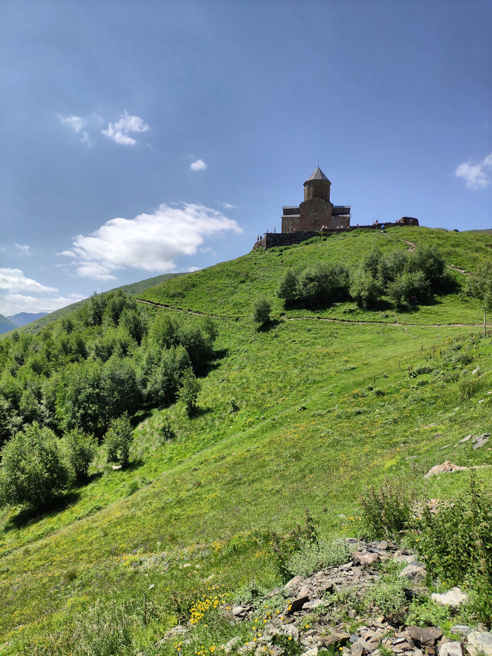 До границы Россия — Грузия 33 км. Саму границу прошли за 45 мин. На нашей стороне пограничник спрашивал: Не боитесь? там же русофобия! да я вот сам тут живу и туда бы ни за что не поехал. Мы покивали и проехали)