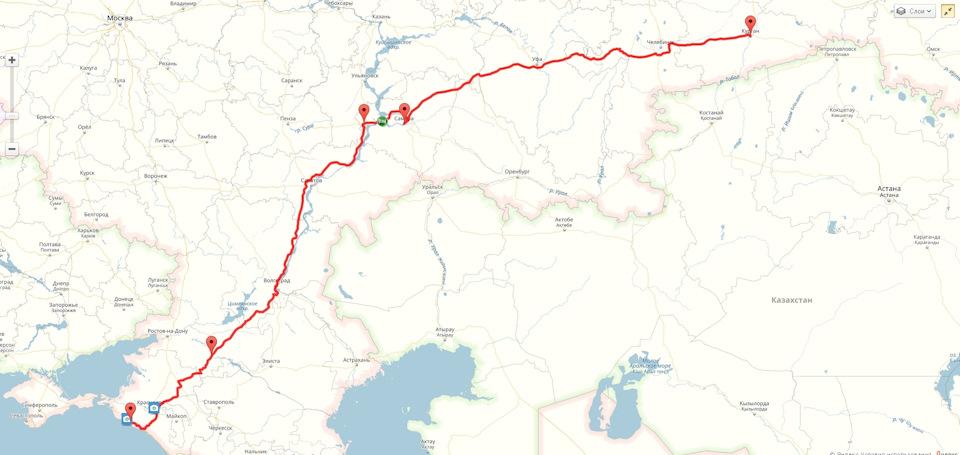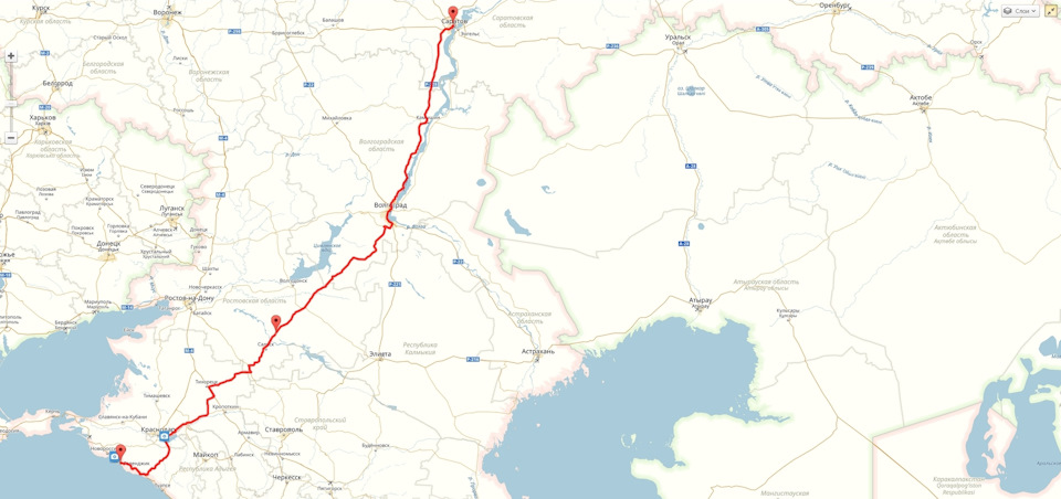 1. Самара — Чапаевск — Пугачов — Балаково — Саратов — Волгоград — Ростов — Краснодар — Геленджик.