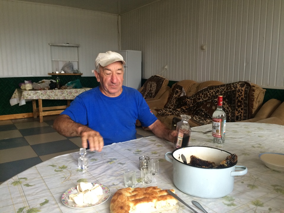 После ночи в роскошной вилле такая походная романтика меня огорчила. Хозяин старался компенсировать бытовые неудобства и в первый же день пригласил на праздничный семейный ужин в соседнем селе. Застолье затянулось на пять часов: нас познакомили со всеми родственниками, накормили хинкалом, пирогами, вареньем из помидоров, напоили коньяком. За проживание, ужин и завтрак мы отдали 1000 Р .
