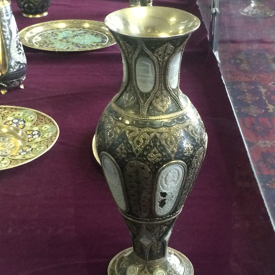 Зато свой небольшой музей здесь есть почти в каждой семье. В нем хранят всё, что считают ценным: первую чеканную тарелку мужа, камин, который делал дед, иранскую посуду, национальные кувшины и костюмы. За экскурсию в один из таких музеев мы заплатили 500 Р . В эту же сумму была включена любительская фотосессия в национальных праздничных нарядах, подъем с гидом на Кубачкскую крепость, прогулка по поселку и обед у хозяина музея.