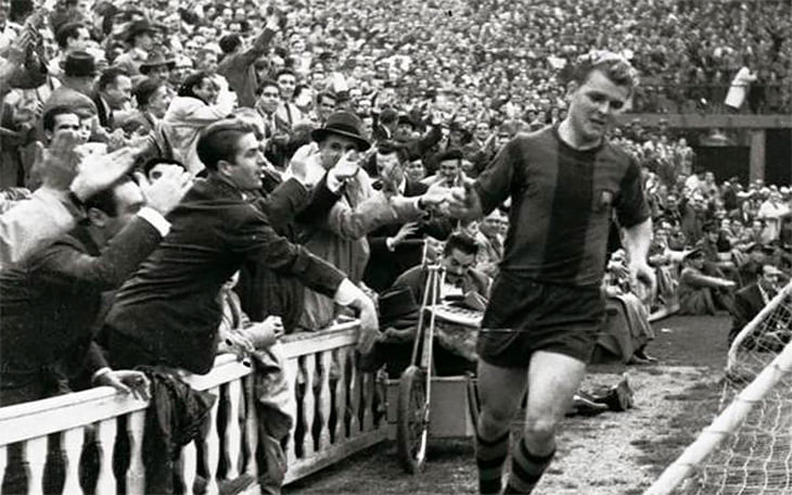 «Барселона» 50-х – ярчайшая команда, на Кубалу, Кочиша, Цибора, Суареса толпами шли зрители. В 1952 году «Барса» взяла пять трофеев за сезон, а уже в 1957 году был построен «Камп Ноу», новый дом «Барселоны» на 99 000 человек. На фотографии выше – как раз первый матч на новом стадионе. В 2009 году у «Камп Ноу» поставят статую Кубале.