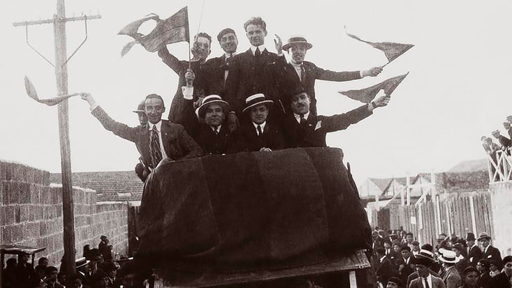 И у Гампера получилось. В 1909-м у клуба появляется собственный стадион, восьмитысячная «Камп де ла Индустрия», а также новый логотип, который с небольшими изменениями дошел до сегодняшних дней. В первые четыре года президентства Гампера – трофей за трофеем. «Барселона» выиграла три Кубка Испании (на фото город празднует одну из побед) и четыре Кубка Пиренеев.
