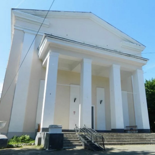 Находится на Соборной площади. На самом деле это бывший воскресенский собор перестроенный под Дом культуры. Опытный глаз и сейчас определит, что в прошлом это было храмовое здание. Храм был закрыт в советские времена.