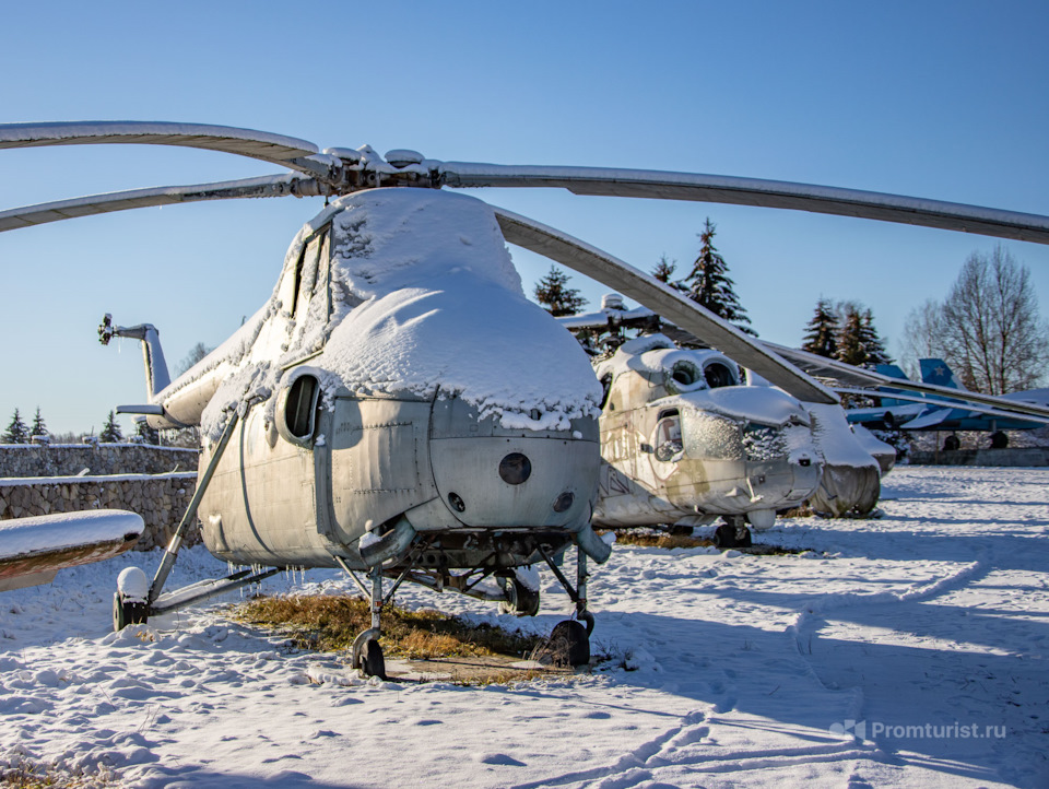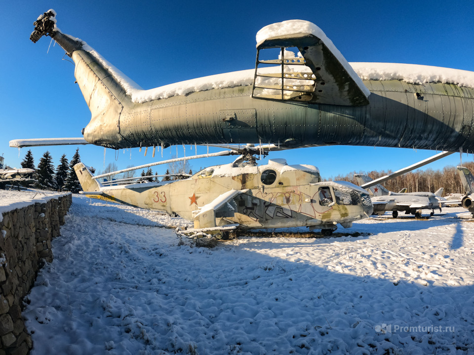 Полный размерНе его месте сделали авиационный музей. На территорию музея свезли самолёты и вертолёты и практически оставили на произвол судьбы и на радость мародёрам. Так они там и стояли.