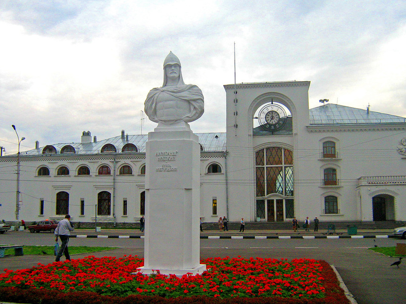 Если вы выбрали поезд, то прибудете на местный ж/д вокзал «Новгород-на-Волхове» (в Новгороде он один). Здание отремонтировано и выглядит аки белокаменные боярские палаты. Оставляет приятное впечатление. С фронтальной стороны вокзал выглядит еще лучше — часы, высокие окна, памятник Александру Невскому — так что, можно на месте сфотографироваться с первой достопримечательностью.