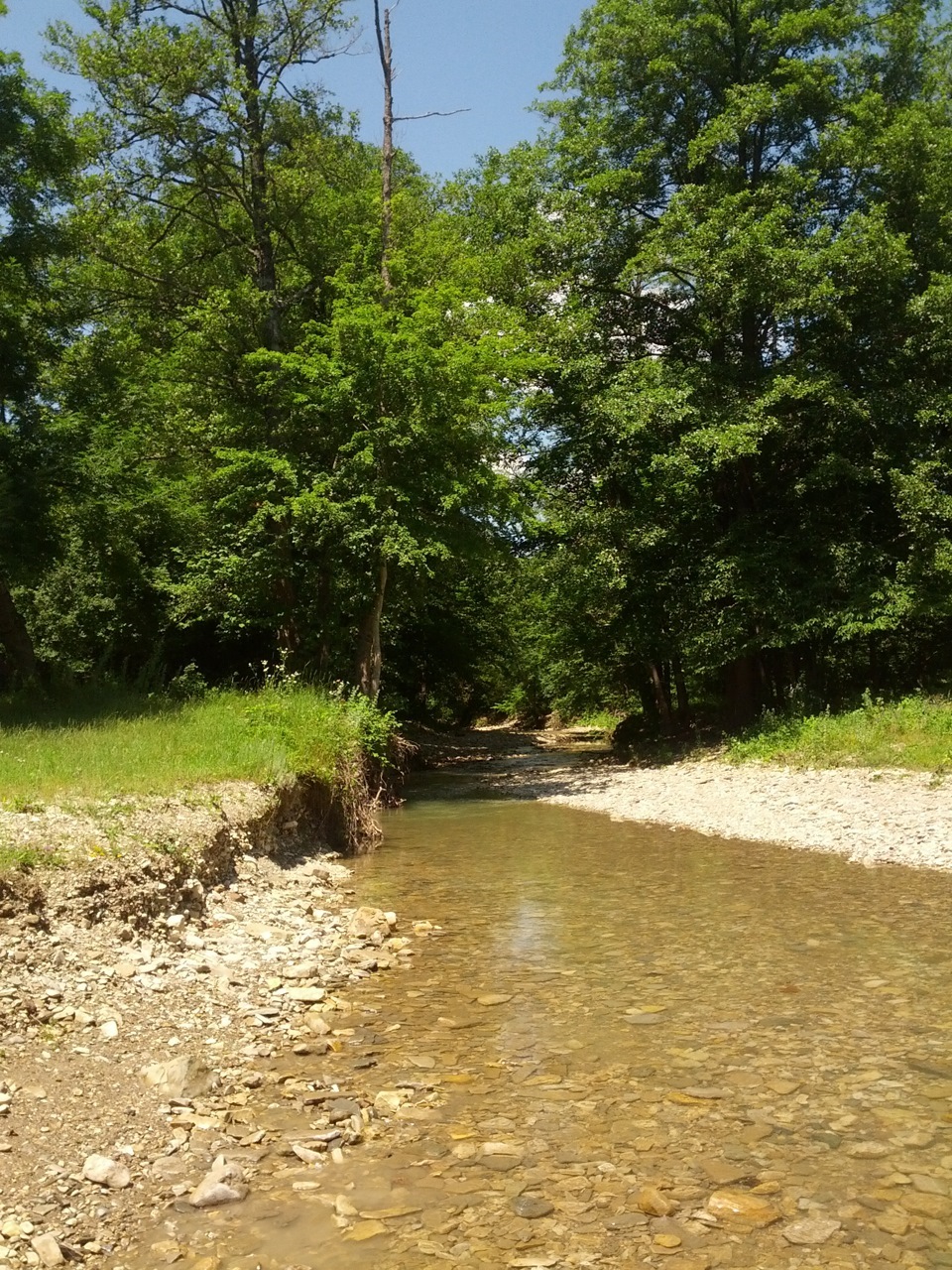 Но дальше — больше! Спустя километров 5 реального горного бездорожья, мы уперлись в реку! Но и это нас не остановило — переехав неглубокую горную речку вброд, мы двинулись дальше!