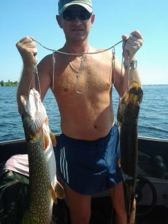 Щука(а по слухам и окунь)стоит на входах в заливы и протоки.Щука ближе к камышу,окунь(крупный) на глубине.