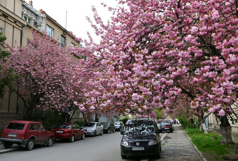 В Ужгороде экзотические сакуры цветут прямо на улицах. Зрелище впечатляющее