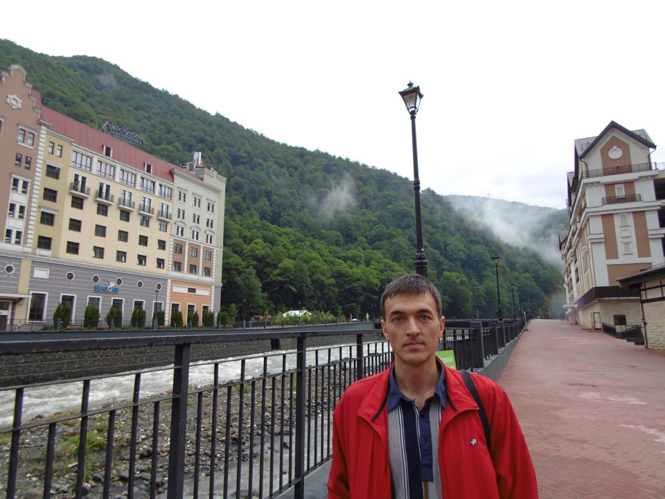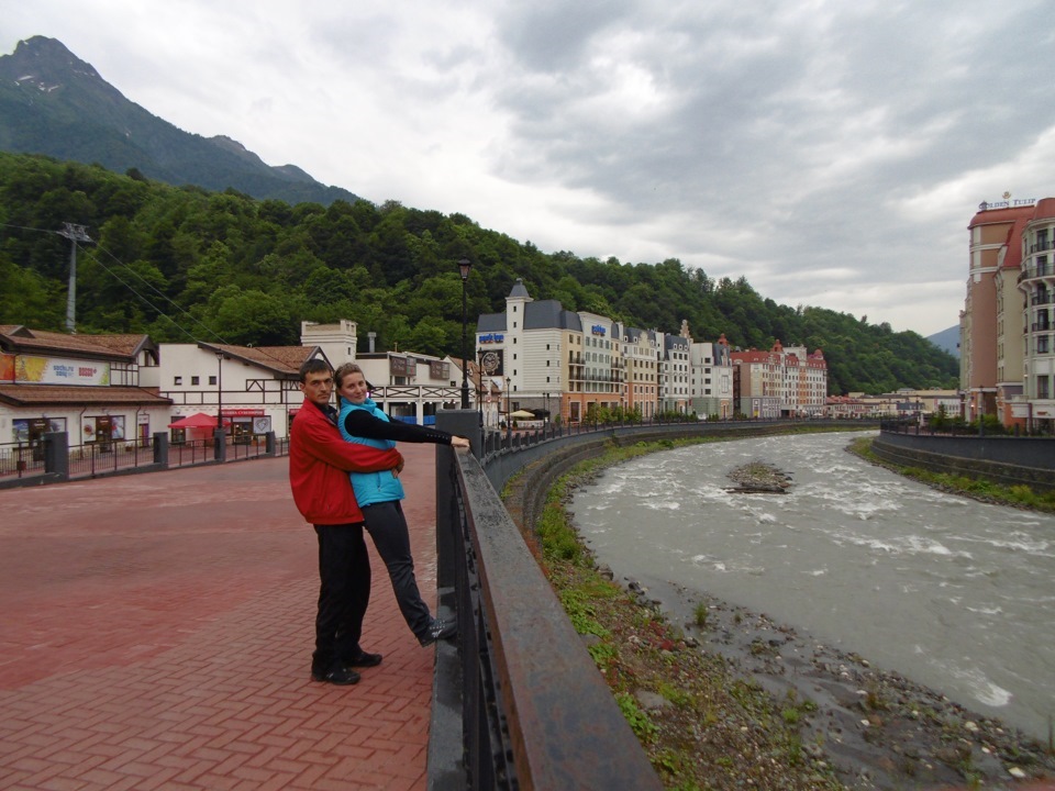 Я честно говоря думал что это отсталая деревня :) оказалось что ее отстроили будь здоров. Кругом магазины, отели, кафе. Хотел спросить у охранника на въезде, куда ехать, но он спал крепким сном. Но выбежала собачонка из будки и, прикиньте, повела нас за собой. Сводила до касс, сводила по Красной поляне, сделала с нами круг по деревушке. Больше часа водила нас.