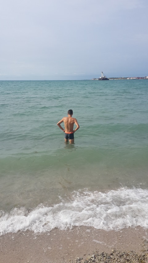 пошли на море. Была небольшая волна )) но мне даже нравится.