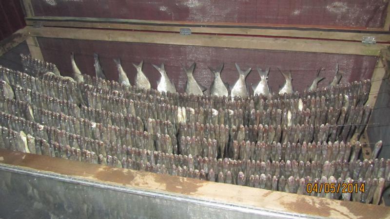 Результат ночной рыбалки - за 3 часа более 20 килограмм рыбы. Результат ночной рыбалки - за 3 часа более 20 килограмм рыбы.7) Прячем засоленную рыбу от жары и влаги. Сразу оговорюсь, что рыть ямы на берегу официально запрещено. Но, как это часто бывает, закон с действительностью противоречат друг другу. Самый верный способ сохранить солëную рыбу от жары - держать её в прохладном тëмном месте. Я не призываю нарушать закон, тем более, на популярных местах такие ямы будут обязательно. Я неоднократно был свидетелем ненадлежащего отношения к засоленной рыбе - её оставляли на солнце и позже довольствовались тухлятиной. Раньше и мы совершали подобные ошибки, но, как говорил Пушкин: "Опыт - сын ошибок трудных и гений парадоксов друг". Помимо прямого попадания солнечных лучей, советую избегать чрезмерного попадания влаги. Поэтому, если вы видите, что собирается дождь - перебазируйте свою рыбу туда где посуше. Могу рассказать небольшую хитрость: если мы везëм уже сухую рыбу домой, мы присыпаем её рисом, немного, на глаз. Рис впитывает лишнюю влагу.