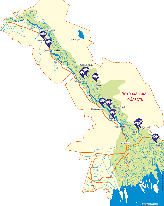 Карта рыболовных мест Астраханской области