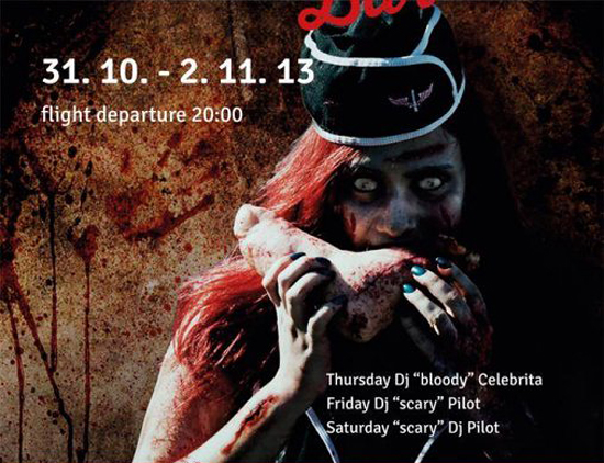 А вот в ПРАГЕ ожидается сумасшедшая зомби-вечеринка. Интерьер клуба будет наряжен в традициях гражданских авиаперевозок американской компании 60-х годов, а гостям предлагается пережить настоящий кошмар крушения самолета!