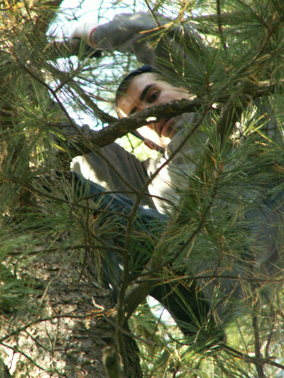 На соседний кедр полезть снова отважился Юра. Он жаловался, что ствол сильно качает.