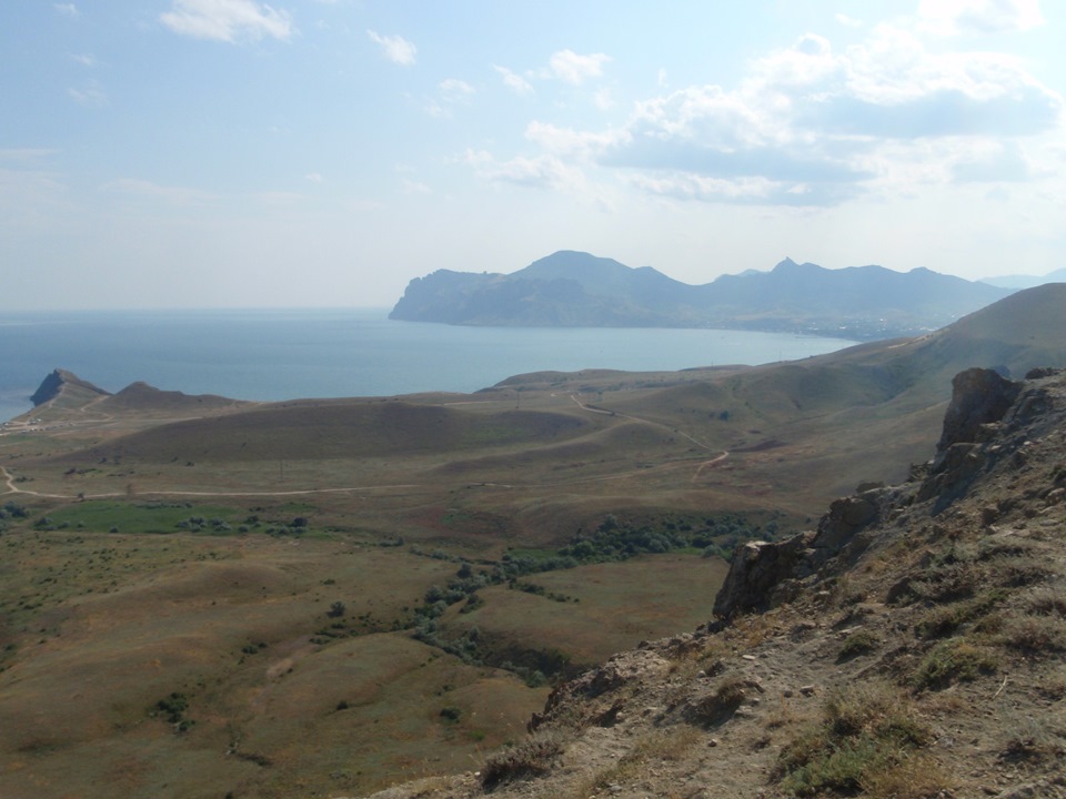 … наконец то съехав на крымскую землю из утробы этого железного монстра, который перевёз вас через пролив, вы, рыцарь на железном коне окажетесь перед виртуальным камнем с тремя направлениями: прямо на Феодосию, направо вдоль побережья и налево в сторону г. Опук. Если ваш конь круизер или спорт, то вы увидите то что видят 90 % приехавших сюда: плохие дороги, толчею на пляжах и гавёный сервис. Ставьте стрелку на 150 и на Феодосию.Если ваш конь дорожник или турэндуро- вы на правильном пути.