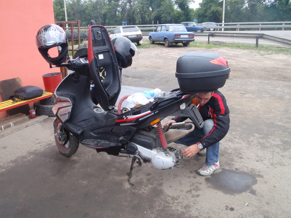 Наши скутеры конечно не ровня Сашиному мотоциклу, у него мощи раз в 5 больше