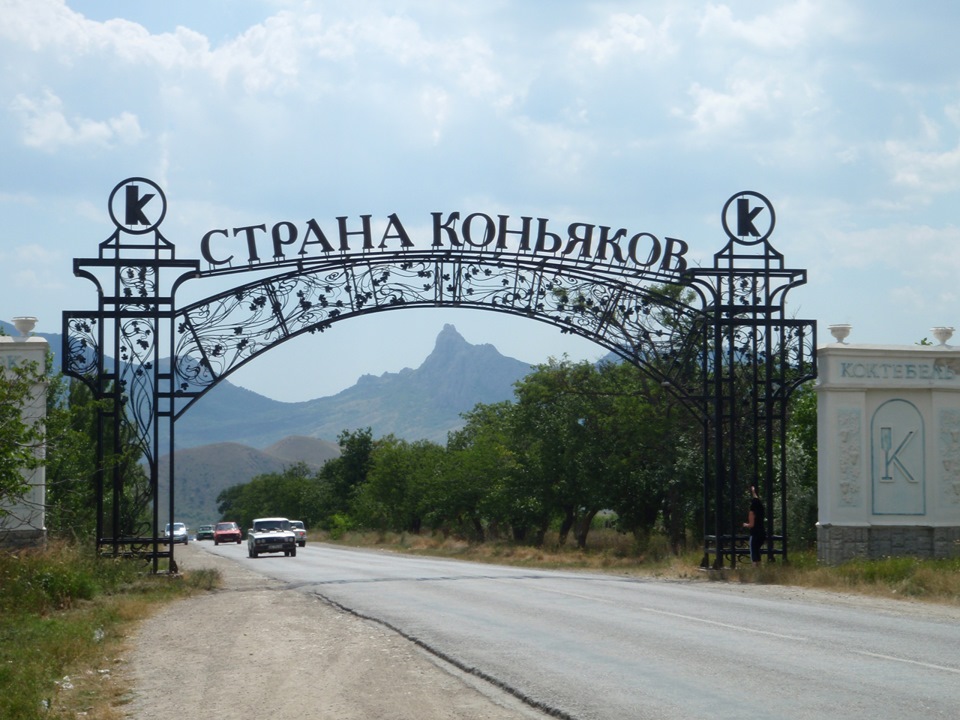 Поэтому немного охладившись, отправляемся дальше. И вот наконец Коктебель. Страна коньяков -как гласит надпись на арке при въезде в город.