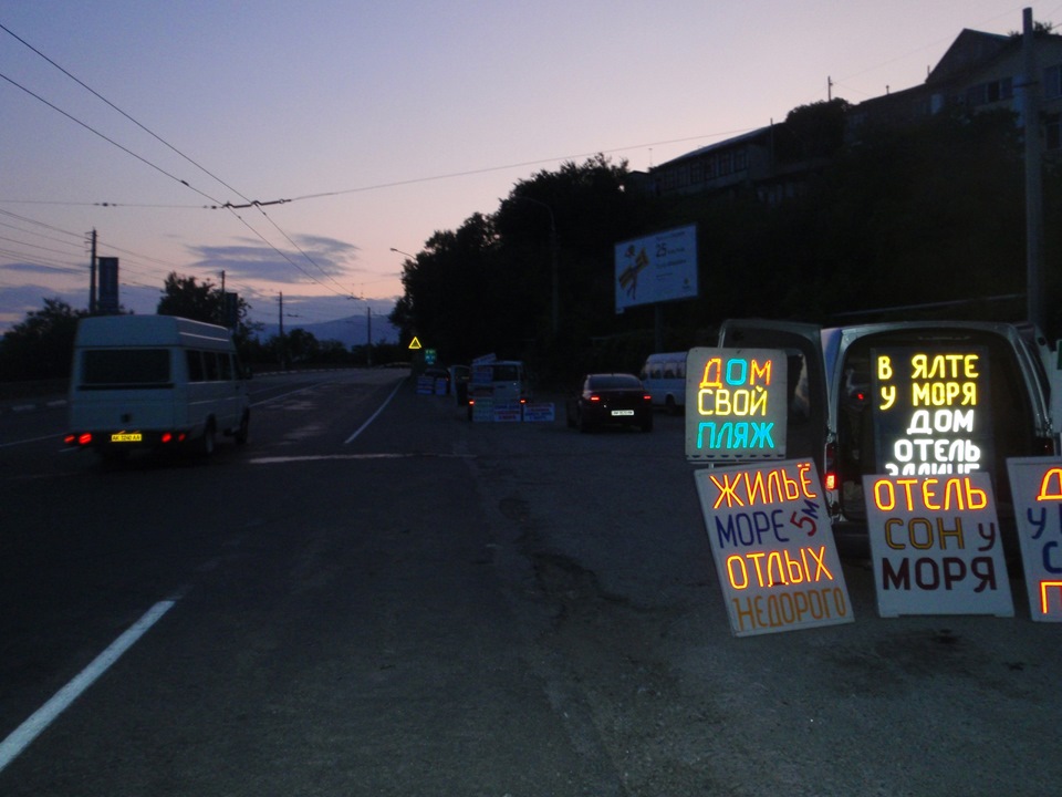 При въезде, как и в любом курортном городе, много предложений по сдаче жилья. Зная цены по Керчи и Феодосии, мы отчаянно торгуемся. Естественно вначале нам предлагают самое дорогое жилье с бассейнами, кондиционерами и в минуте от моря. Нам это не нужно. Мы приехали за солнцем и морем. Кондиционер и бассейн мы и в Москве видели. До моря мы так же можем доехать на своем транспорте. От некоторых предложений приходилось отказываться сразу: