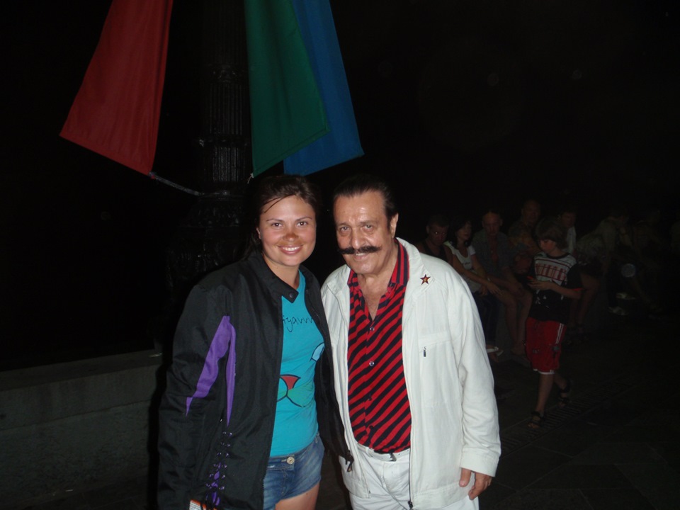 Приемы общения с местными уже отработаны, поэтому быстро находим прекрасное недорогое жилье в старинном особняке. С душем, всеми удобствами, большой верандой и мангалом. Скинув вещи, идем гулять на набережную. Набережная вечером это главное место в Ялте. Жизнь там не затихает всю ночь. Любуемся на огромный заграничный круизный теплоход в порту, множество яхт, гуляем среди артистов, певцов, художников, фотографов, пьем пиво и наслаждаемся жизнью. Случайно встречаем там прогуливающегося Вилли Токарева. Он долго не хотел фотографироваться, но пришлось:)