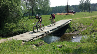 Едем дальше. Подъезжаем к Пионерску . Под колёсами мягкая полевая дорога сменяется жесткой гравийкой. Слава недоумевает - зачем люди платят за массаж? Здесь я сильнее начинаю тосковать по амовилке. На фате стоит ригидная вилочка. Выбираем параллельную гравийке дорогу помягче. Но в конце всё равно приходится ощутить все прелести гравийного массажа.