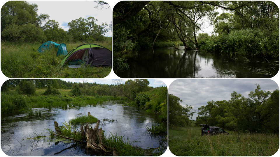 Когда дали команду выходить из машины и распаковывать вещи — уже было очень темно. Открыв дверь и попытавшись выйти из машины — я провалилась… в траву. Мне казалось, она была выше меня, но мягкая-мягкая. Место под лагерь было очень приятным — река, тихо, чисто и уютно.