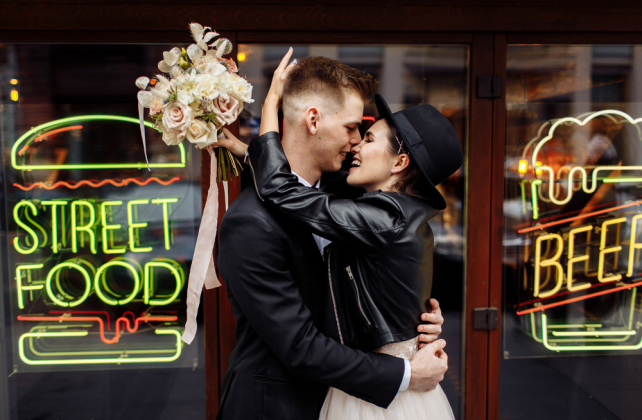 Выбирайте самую безумную и необычную тематику праздника, устраивайте фотосессию хоть на полдня, если вам этого хочется, меняйте локации и образы – никому не придётся вас ждать, ездить всей толпой с места на место, не будет уставших, разочарованных или недовольных. Вы не доведёте до обморока бабушку чёрным свадебным платьем или парными татуировками на пальцах вместо обручальных колец. Мама не закатит глаза при виде мотоцикла вместо лимузина, а дядя Ваня из Рязани не будет возмущаться из-за веганского меню или безалкогольного ужина. Нет гостей – не проблем!