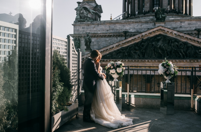 На чём точно не стоит экономить, так это на фото- и видеосъёмке, стилисте и выездной регистрации. Конечно, вы можете прийти в ЗАГС в джинсах и футболках, но разве не хочется, чтобы этот день чем-то выделялся из череды стандартных будней? Поэтому советуем всё же подготовиться и выглядеть на все сто. А выездная церемония, на которой присутствуют только жених, невеста, регистратор и фотограф с оператором, может быть не менее трогательной и запоминающейся, чем клятвы в присутствии толпы гостей. При условии, что она будет атмосферной и пройдёт в особенном месте.